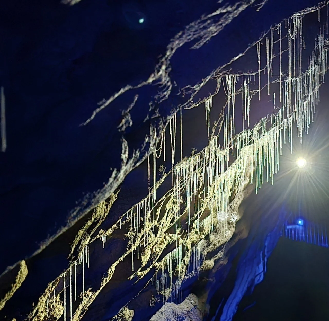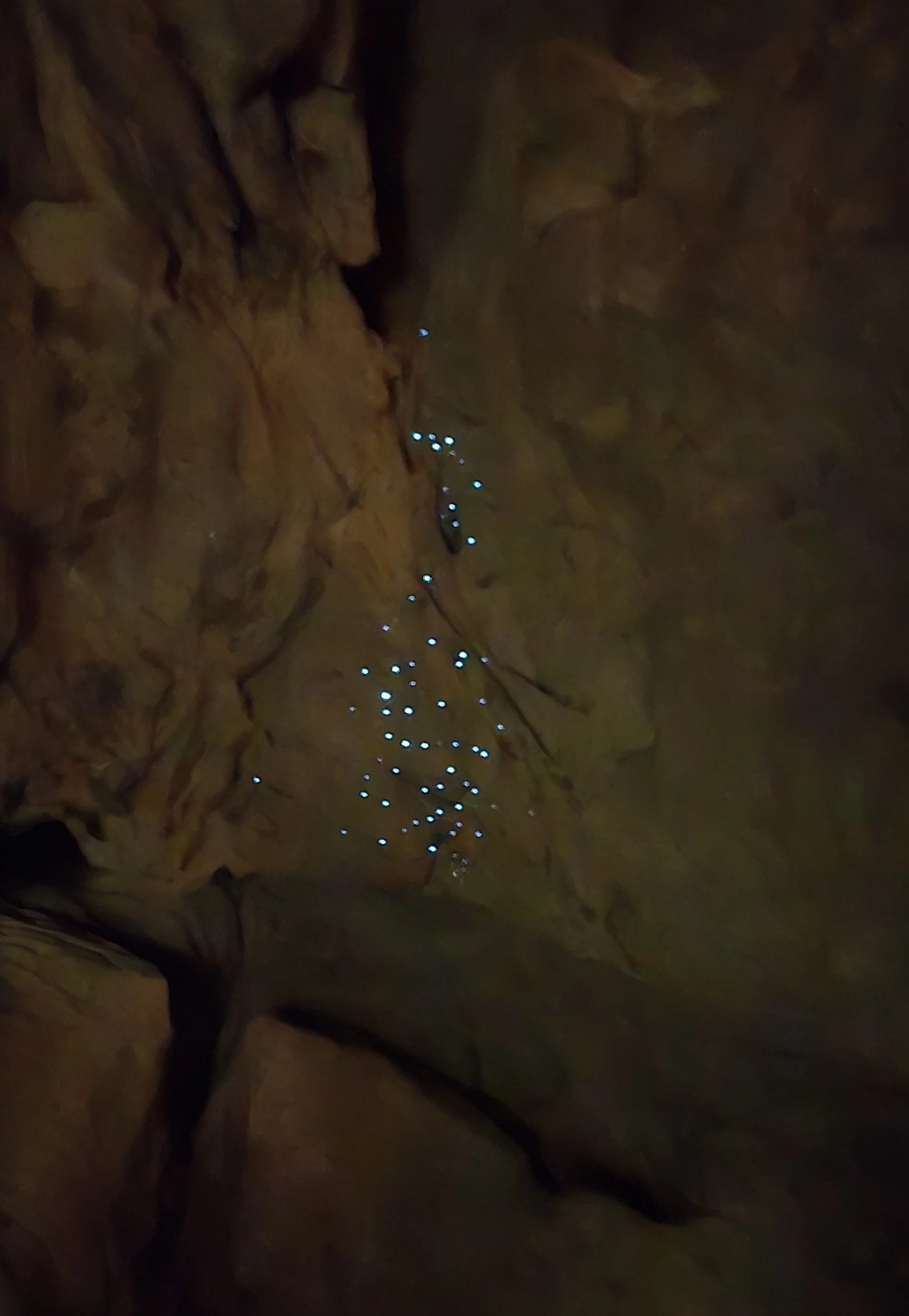 Before entering, the guides close off the doors to prevent airflow from disturbing the glowworms and the cave formations.
